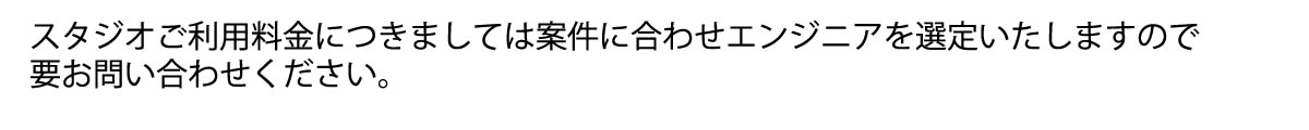 セッティングや機材の指定等により異なります。お問い合わせください。またサブをお付けになる場合は1DAY,\10,000~【4hまで】/4h以降1h,\2,500~となります。